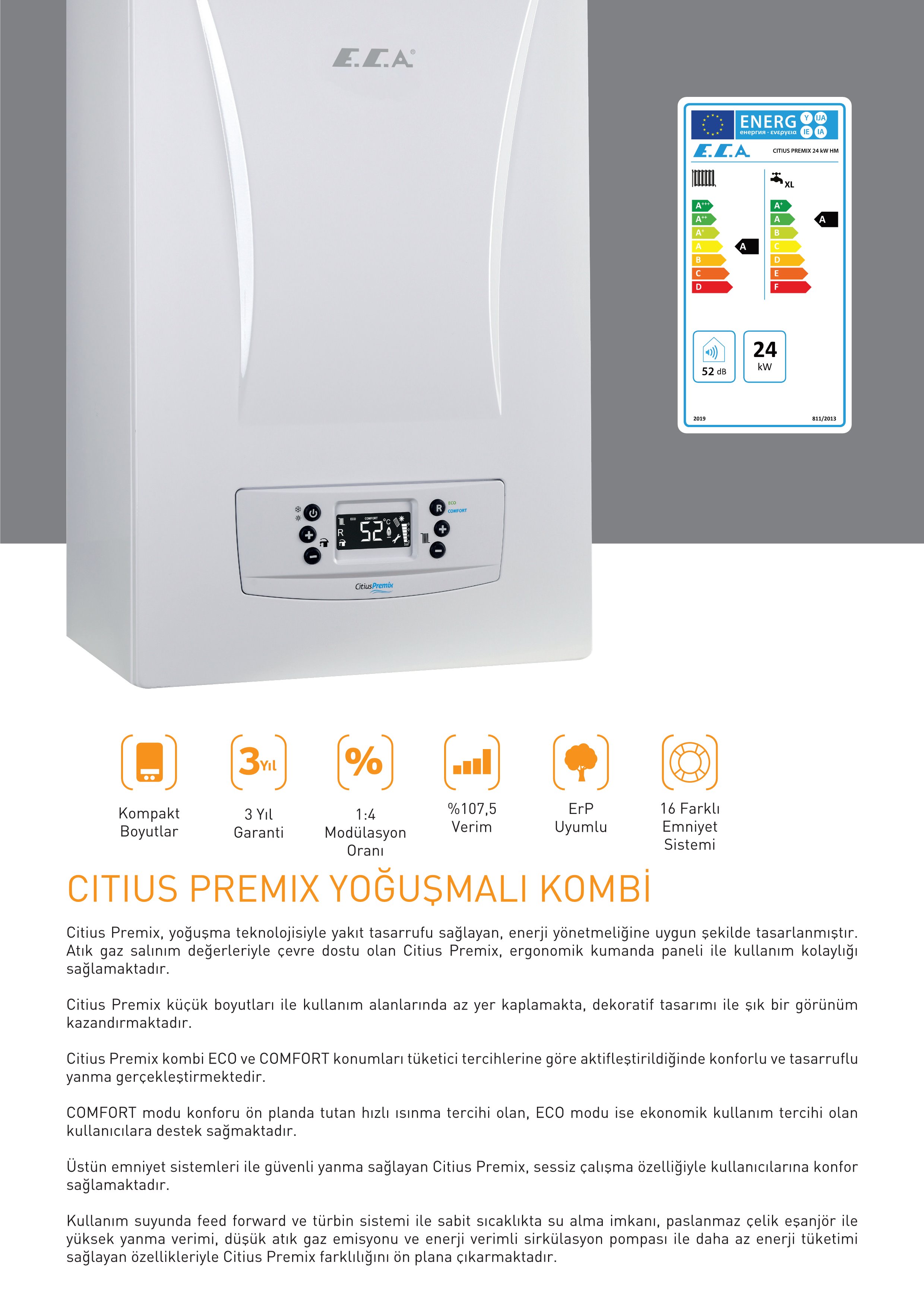 E.C.A Citius Premix 24 Kw Tam Yoğuşmalı Kombi